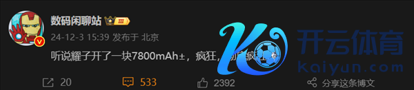 快科技12月3日讯息,据数码座谈站爆料云开体育,荣耀当今正在测试7800mAh超大容量电板,若是近期商用,将刷新总共智妙手机行业的电板尺度。 ![]() 放胆当今,荣耀旗下电板容量最大的机型是荣耀X60 Pro,借助青海湖电板本领,其领有6600mAh典型值容量,相较于同规格的石墨负极锂离子电板普及了7.7%,该电板松驰复古破钞者泛泛使用两天,真的作念到“两天一充”。 纵不雅总共手机行业,当今能作念到超7000mAh容量电板的手机厂商少之又少,此前华为曾推出一款畅享60X,其电板容量达到了7000mAh,然则动作一款初学级手机,整机的分量却达到了219克,显得相等千里重。 若是荣耀有时最初行业,推出电板容量逾越7000mAh的智妙手机,同期还能限度手机的合座分量,这将在手机界限带来紧要的改造和冲破。 若这一本领有时获得量产,这块7800mAh容量电板有望首发于荣耀X70系列。 ![]() 【本文兑现】如需转载请务必注明出处:快科技 攀扯裁剪:无痕 著述实质举报]article_adlist--> 声明:新浪网独家稿件,未经授权阻挡转载。 --> |