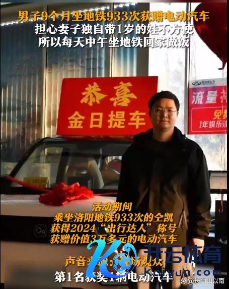 男人坐地铁933次获赠汽车,背后藏着啥奥秘家东谈主们,最近河南洛阳一男人坐地铁933次获赠一辆价值3万多元的电动汽车。 男人叫仝凯,是别称28岁的厨师。2024年3月28日至12月22日,他每天早上7点起床作念饭,接着坐地铁去七里河上班。中午2点放工后又坐地铁回家给内助和1岁孩子作念午饭,下昼再坐地铁去上班,平均每天坐4趟地铁。