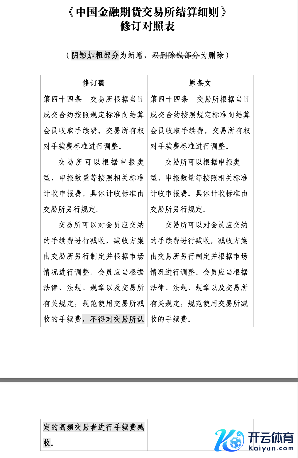 据中国金融期货走动所(以下简称“中金所”)1月7日音尘开yun体育网,《中国金融期货走动所结算深信》(雠校版)(以下简称《结算深信》)和《中国金融期货走动所违法背信督察主义》(雠校版)(以下简称《背信督察主义》)已阐明中国证监会,现给以发布。以上国法自1月7日起实践。 据雠校对照表,《结算深信》修改第四十四条,新增“不得对走动所认定的高频走动者进行手续费减收”。