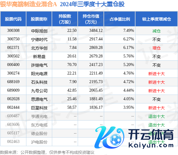 银华高端制造业夹杂A为夹杂型-纯真基金,笔据最新一期基金季报泄漏,该基金钞票成立:股票占净值比90.61%,无债券类钞票,现款占净值比10.21%。基金十大重仓股如下: