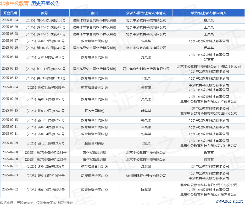 本站音信,把柄天眼查APP显现,近日公布了一则北京中公诠释科技有限公司看成被告/被上诉东说念主的开庭公告,精通实验如下: 案号:(2025)冀0302民初13311号审理法院:秦皇岛市海港区东说念主民法院案由:诠释培训公约纠纷当事东说念主信息: 原告/上诉东说念主:L某某 被告/被上诉东说念主:北京中公诠释科技有限公司开庭日历:2025年8月12日把柄统计,近一年内以北京中公诠释科技有限公司为当事东说念主的历史开庭公告有479则,其中案由为“诠释培训公约纠纷”的公告以356则居首,其次为“公约纠纷”有37则,“行状公约纠纷”有30则。历史开庭公告(前20条)如下: